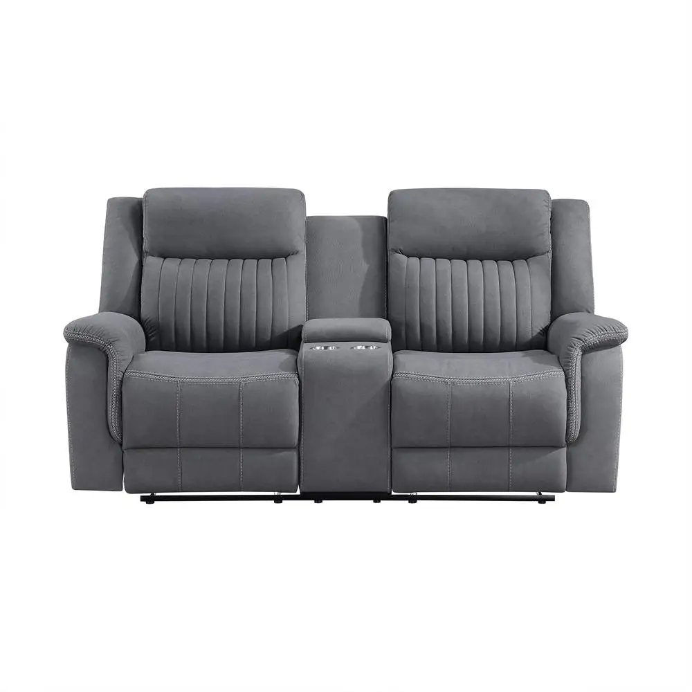 Double Recliner Sofa Manual Wall Hugger Home Theater Seating Polished Microfiber