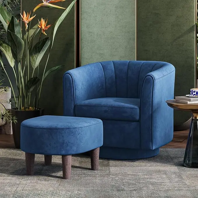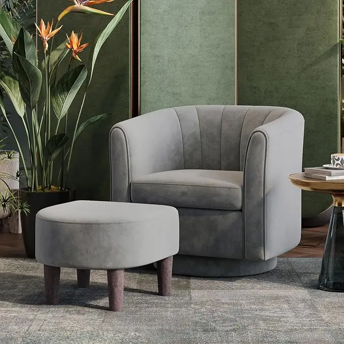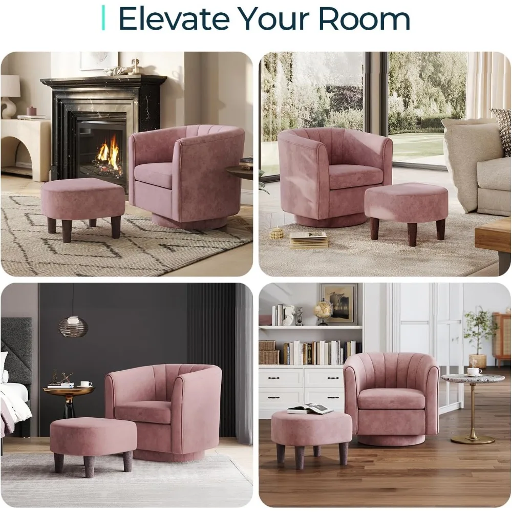 Swivel Velvet Chair with Ottoman