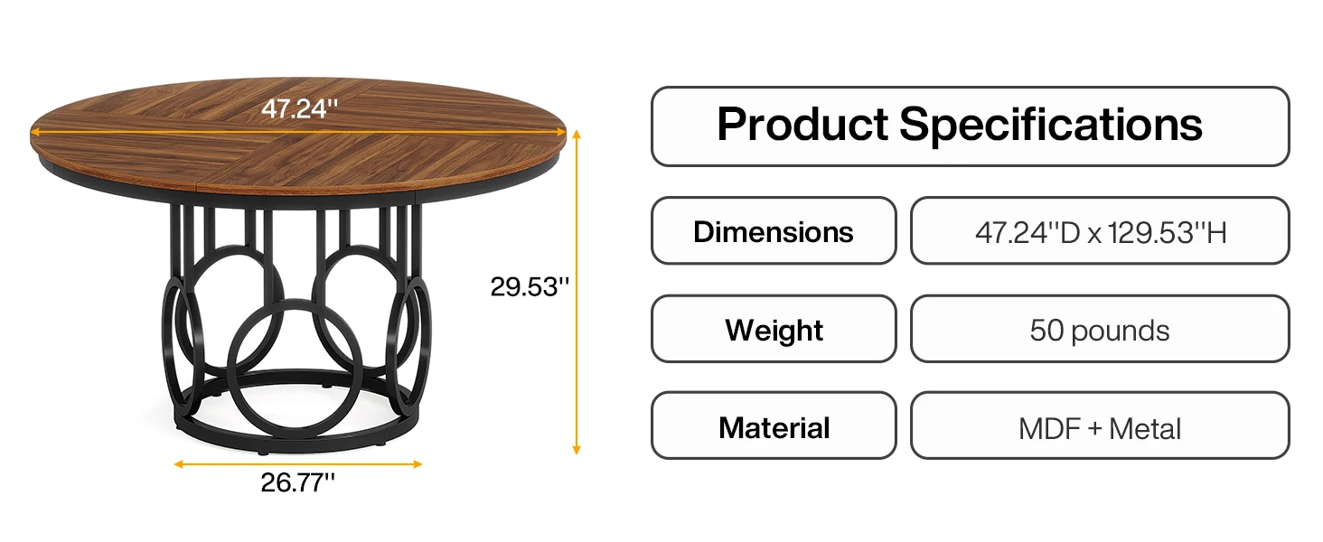 Be the first to review “Tribesigns 47″ Round Dining Table for 4 People, Farmhouse Kitchen Table with Wooden Texture Surface & Pedestal Base,”