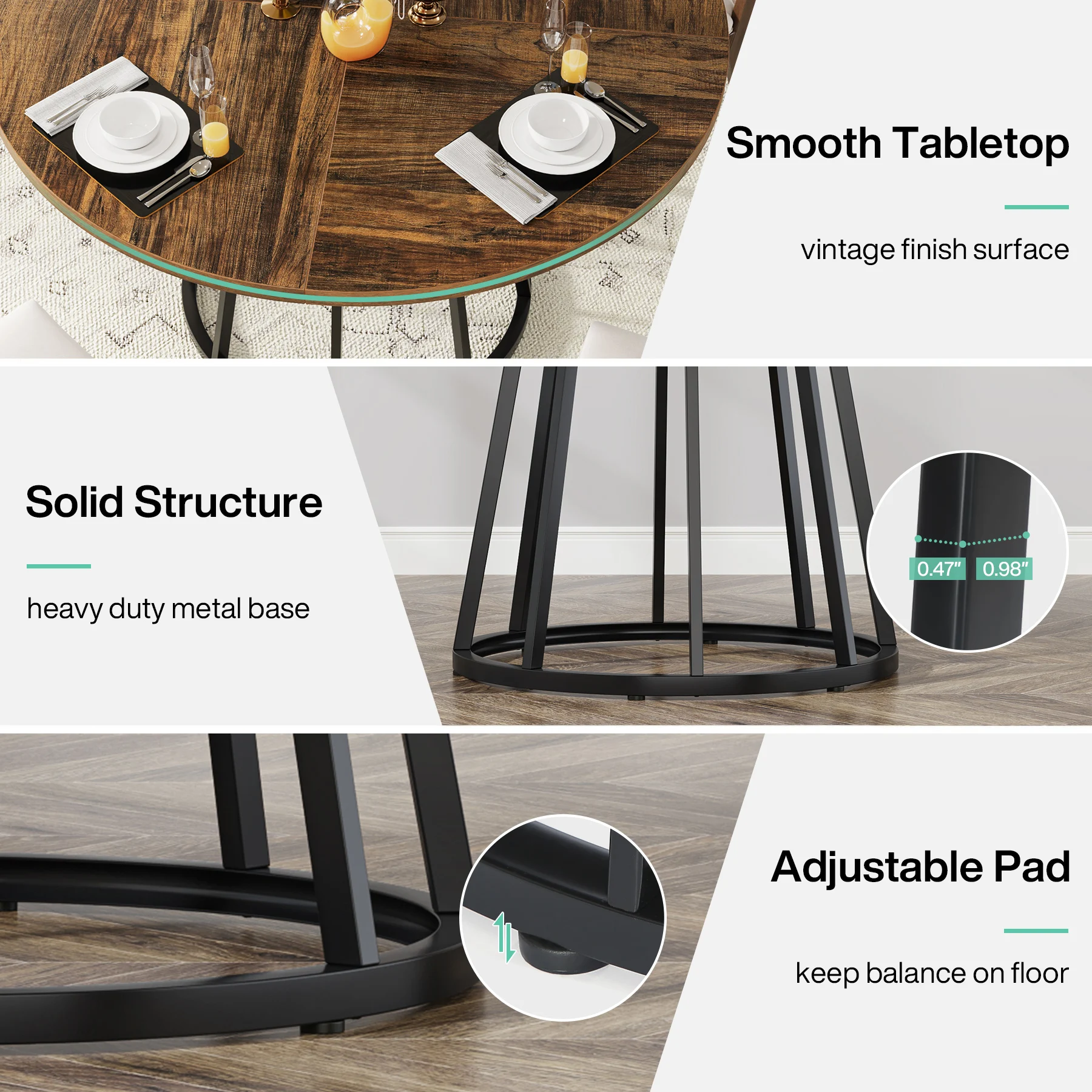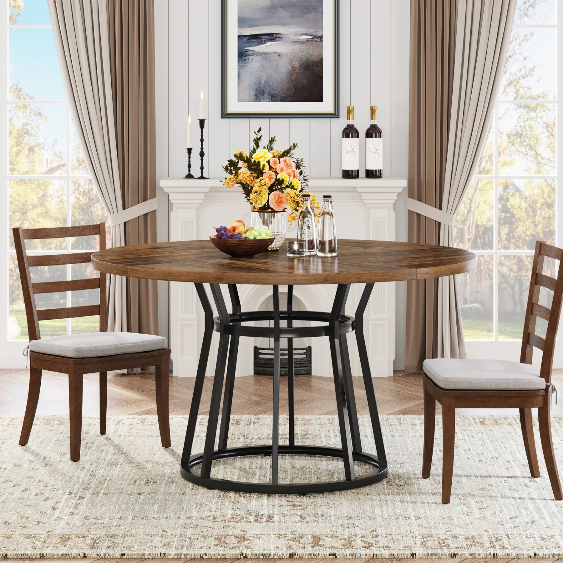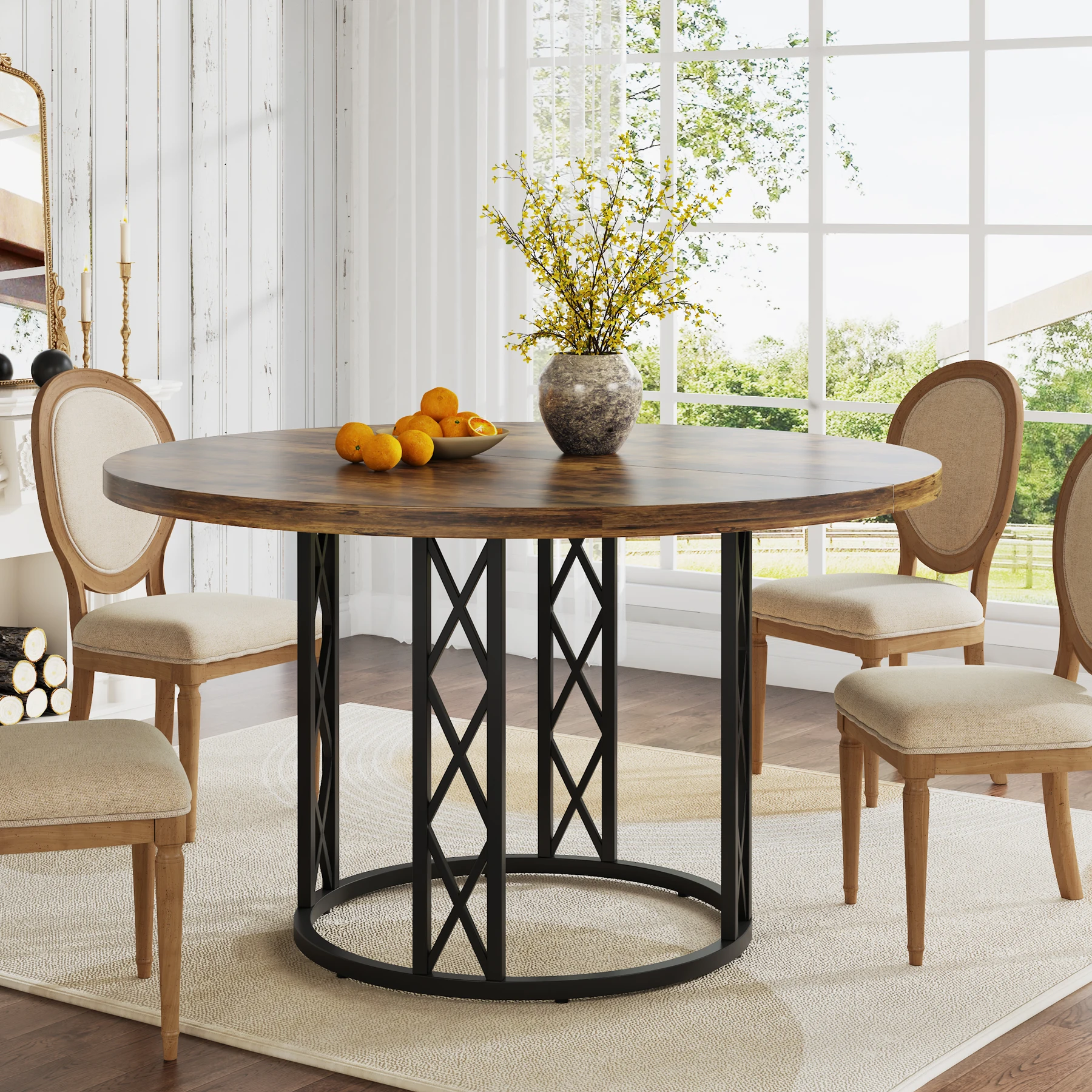 Tribesigns 47″ Round Dining Table for 4 People, Farmhouse Kitchen Table with Wooden Texture Surface & Pedestal Base,